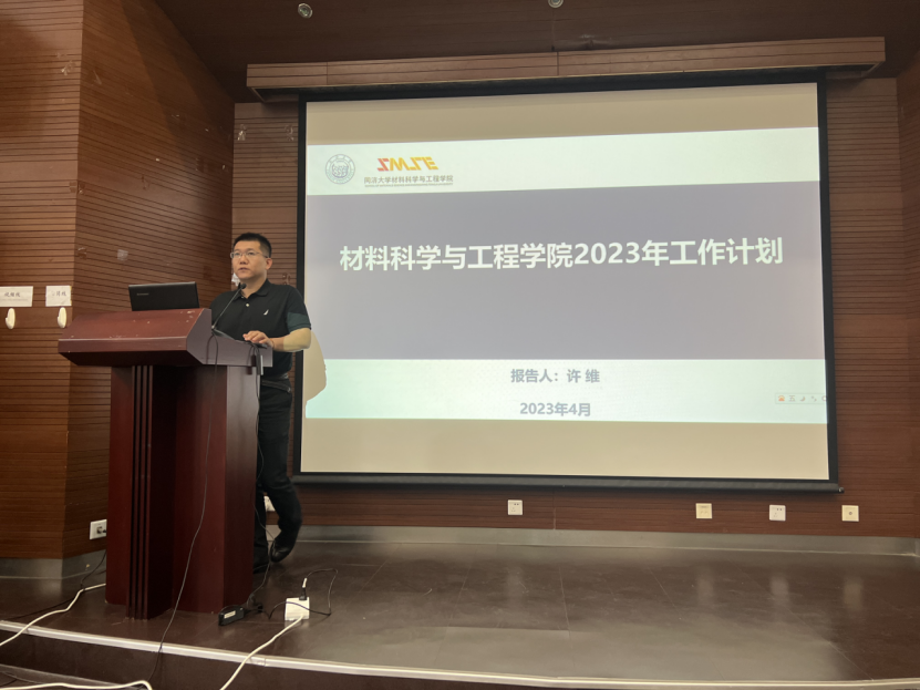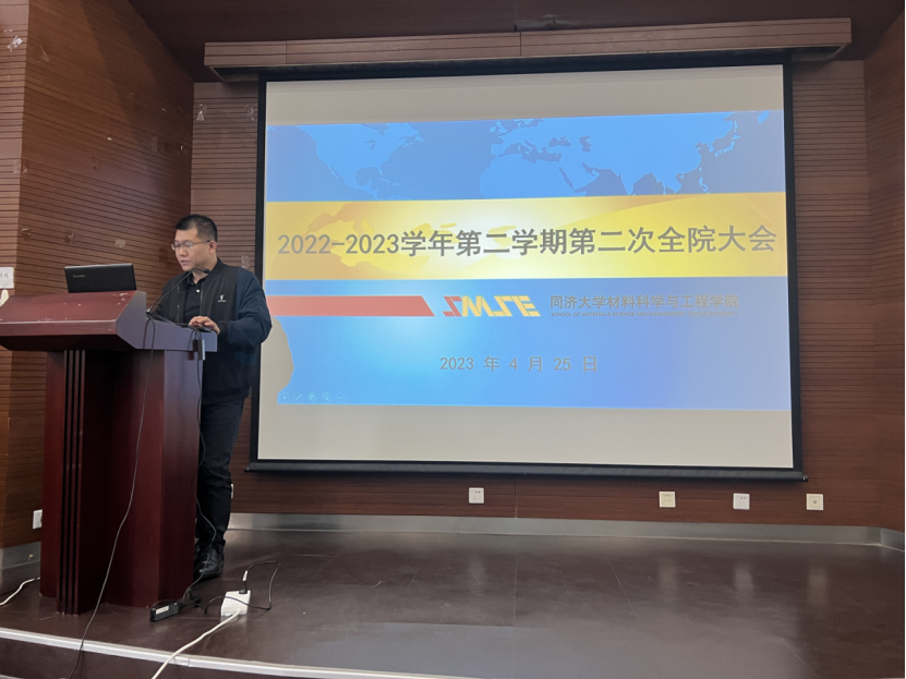 2022-2023学年第二学期第二次全院大会在德才馆二楼报告厅召开。会议传达学校学习贯彻习近平新时代中国特色社会主义思想主题教育动员大会及实施方案精神、学校2023年度工作要点精神,并就学院相关工作进行布置。会议由许维院长主持。学院党政领导班子和全院教职员工140余人参加会议。