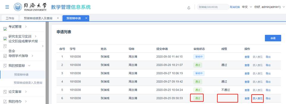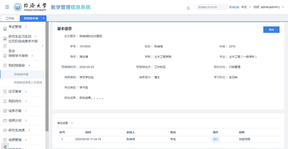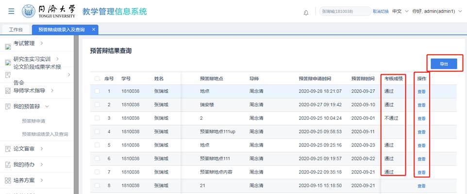 步骤 4 点击列表中的“导出”,可以导出预答辩结果表
