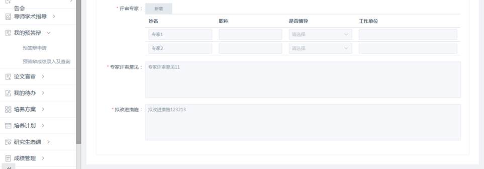 教学管理信息系统-必修环节-预答辩功能业务,为学生提供简单的操作指导。