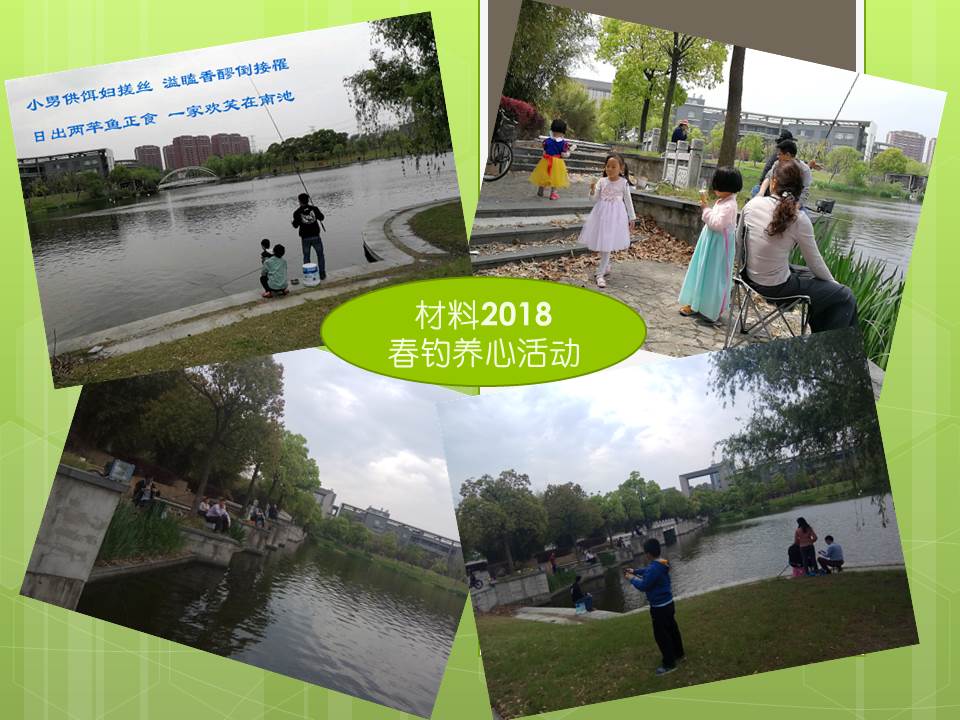 垂钓不仅是一项体育运动,更是一项养心运动。一竿一线,一处水湾,便可令垂钓者如入无人之境,享受沉静自适的精神之乐。2018年4月22日,色情视频 钓鱼协会分会利用嘉定校区的有利资源,开展了“2018春钓养心”活动。春日阳光下,老师们面对清澈的水面,眼不离漂,手不离杆,呼吸着新鲜的空气,静等着鱼儿上钩。同时参加活动的还有我们的小家属们,孩子们在草地上一起玩耍,当上鱼时,孩子们兴奋地端着小桶冲过去……真是一番“入滩风急浪花飞,手把鱼竿傍钓矶。自是钩头香饵别,此心终待得鱼归”的景象。