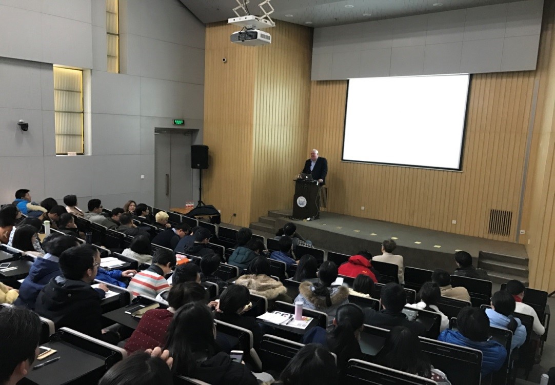 四平路校区综合楼1002报告厅,黄云辉教授主持了由Gregory博士主讲的同济科思创杰出学者讲坛。Gregory博士做了题为“Living in an Advanced Materials World”的精彩报告,就Wiley出版社及Advanced系列期刊所涉及的研究领域、期刊内容、近年热点研究方向、文章发表及投稿、审稿等事项做了详细介绍,与在场的材料学院等院所百余名师生进行了热烈的交流与讨论,并现场赠书留念。