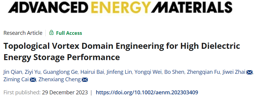 翟继卫教授研究团队将以上研究成果以《Topological Vortex Domain Engineering for High Dielectric Energy Storage Performance》为题发表于《Advanced Energy Materials》上。第一作者为色情视频