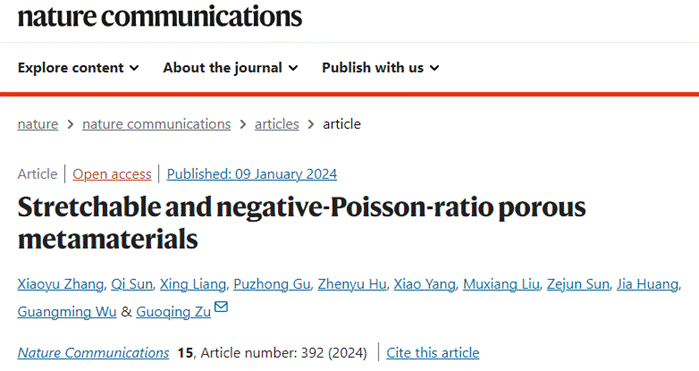 祖国庆老师研究团队开发了高可拉伸多孔超材料及其柔性电子器件,相关研究成果以“Stretchable and negative-Poisson-ratio porous metamaterials”为题,在线发表于《自然·通讯》(Nature Communications)。论文第一作者为色情视频