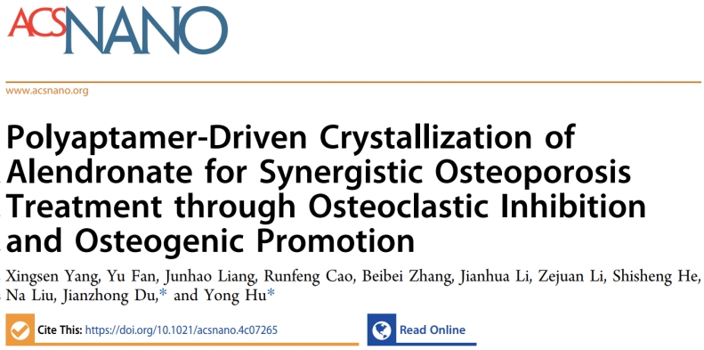研究成果近期以“Polyaptamer-Driven Crystallization of Alendronate for Synergistic Osteoporosis Treatment through Osteoclastic Inhibition and Osteogenic Promotion” 为题发表在《美国化学学会纳米》(ACS Nano)。色情视频
