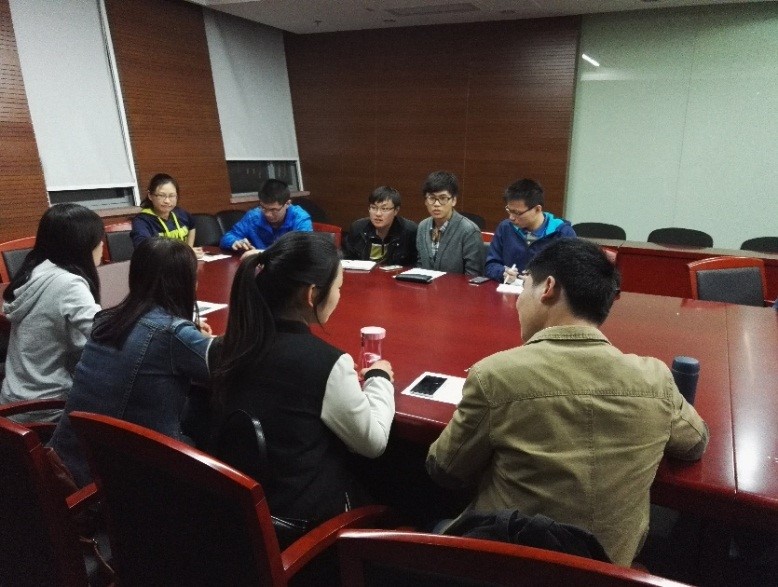 党支部副书记任强主持开展了“两学一做”学习教育。任强同志首先带领各位同志回顾了“两学一做”活动的背景及主要精神,并提出了“如何在基层贯彻落实‘两学一做’精神”及“党员应该如何认识‘两学一做’精神”的议题。此后,支部成员分为三个小组对以上两个议题实施了深入、热烈的讨论。第一小组认为,贯彻落实“两学一做”精神,需要每位党员从自身做起,由点带面,形成一种良好的学习氛围。第二小组认为,“两学一做”精神体现了党员的先进性,是我党提高党员党性修养和思想觉悟的重要举措。几个小组相互交流观点,支部成员刘毅、郭二飞、夏育成、钱辰、唐晓博、尹军、任强都积极主动代表小组发表看法,使支部成员对于“两学一做”精神形成更加全面、深刻的认识。