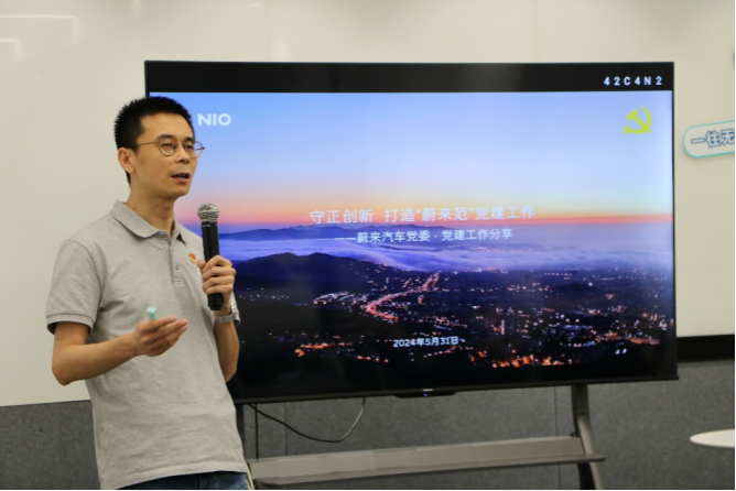 在党建交流环节,双方就党建工作的开展进行深入的汇报与交流。上海蔚来汽车有限公司党委副书记李蒙对色情视频 师生莅临蔚来体验中心参观交流表示诚挚的欢迎,并就“守正创新,打造‘蔚来范’党建工作——蔚来汽车党委党建工作”展开了全面的分享。学院党委副书记梁春江以“基于学科特色的研究生党建工作模式探索”为题,为现场人员讲述了新时代下实施研究生党建工作的探索与思考。
