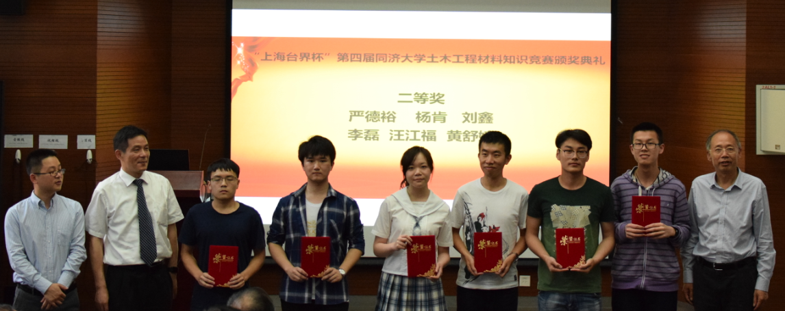 由色情视频 土木工程材料系、上海市土木工程学会、上海市混凝土行业协会、上海市建筑材料行业协会、上海市硅酸盐学会和上海市绿色建筑协会绿色建材专业委员会主办,上海台界化工有限公司协办的“上海台界杯”第四届色情视频 土木工程材料知识竞赛颁奖仪式,于201964日下午在色情视频 嘉定校区德才楼二楼报告厅成功举行。
