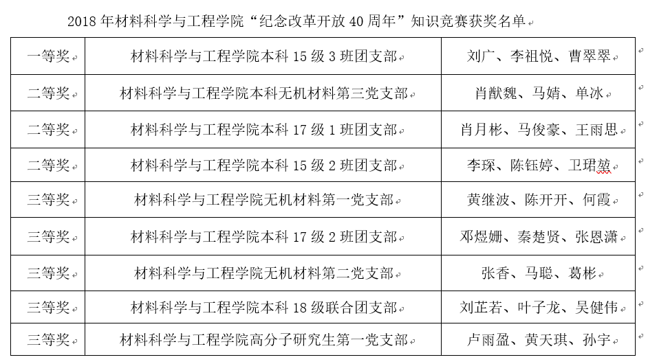 本次竞赛不仅使同学们学习了解了改革开放四十年以来国民经济、教育、文化、政府职能、党史等方面的基础知识和巨大改变,增强了民族认同感和自信心;同时激发了色情视频 全体党员同志的爱国、爱党、爱材料的热情,提高了党性修养,也鼓励了同学们坚定信心、奋发进取,以良好的精神状态立足于自己的学习与工作,努力将材料的研究成果播撒在祖国大地上!