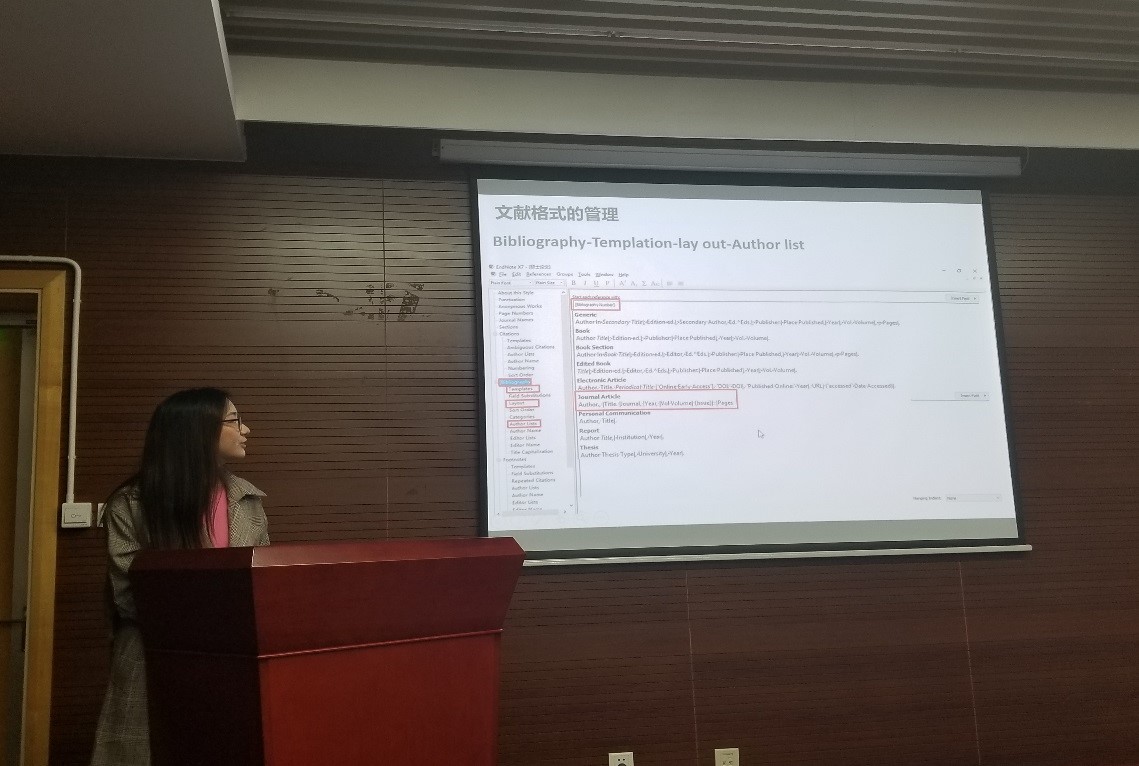 本次讲座中萧雨芬博士主要与同学们分享了两部分内容,第一部分是文献调研以及数据库的查找与整理,第二部分则是关于EndNote软件的具体应用。