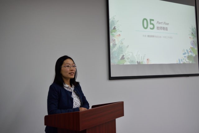 全员大会最后,由周龙老师上台讲话,周老师带来学院党委副书记王凌凌老师对新一届研会的美好祝福和殷切期望,感谢大家的热情奉献,希望研会成员扎扎实实干事,踏踏实实做人,牢记习近平总书记的教诲,即博学、审问、慎思、明辨、笃行,同时希望同学充分利用好时间,做到内有激情,外要从容不迫。新的一年,周老师希望新加入的研会小鲜肉们,能够度过有价值、有意义的一年,在这个温馨活泼的大家庭里收获快乐、收获友谊、收获成长,期待研会更加优秀、更加完善,不断打造品牌特色活动,努力开拓进取,追求卓越。