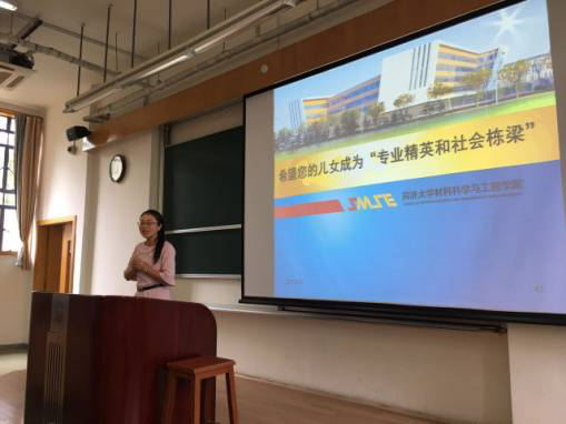 邱军副院长向各位家长详细介绍了学院的人才培养和专业特色,以及学院国际化办学方面的情况,使各位家长对于孩子在材料学院的学习培养和发展方向有了更加深入的认识。