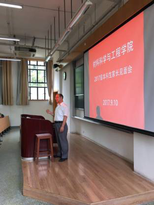 。黄云辉教授王书记向家长们介绍了学院的基本情况,他讲到选择材料即选择了未来的发展方向,时代赋予了材料太多的使命,同学们必将在材料领域大有作为,并真诚地与家长们分享了自己子女的培养经历,与家长们共勉育人之道。