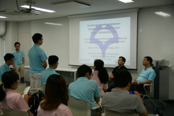 7月18日,团队启程赶赴大阪大学。阪大校园绿树横生,建筑硬朗,整洁优美,给同学们留下深刻印象。大阪大学的甲骨教授及其两位研究生对团队的到来表示热烈欢迎,并为团队发放了丰富的学校资料以供阅览。
