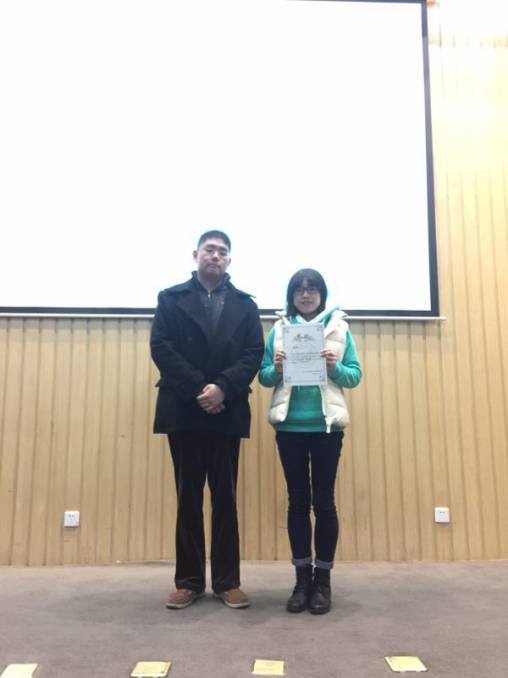 大会第五项材料之星表彰,经过大会工作人员紧张的统计,实践部李婷玉同学以最高票数当选了第一学期的材料之星,团委任仲佳老师为其进行了颁奖。