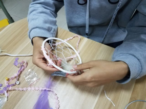 捕梦网的制作较为困难,编制内网的过程更是兼需耐心和手艺,好在大家相当专注,在设计内网时还别出心裁地加入精巧的点缀。