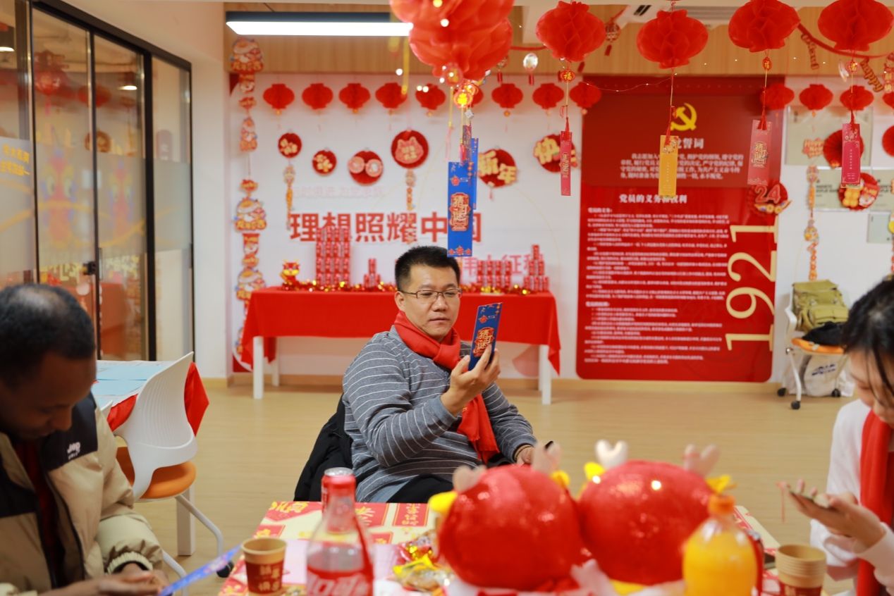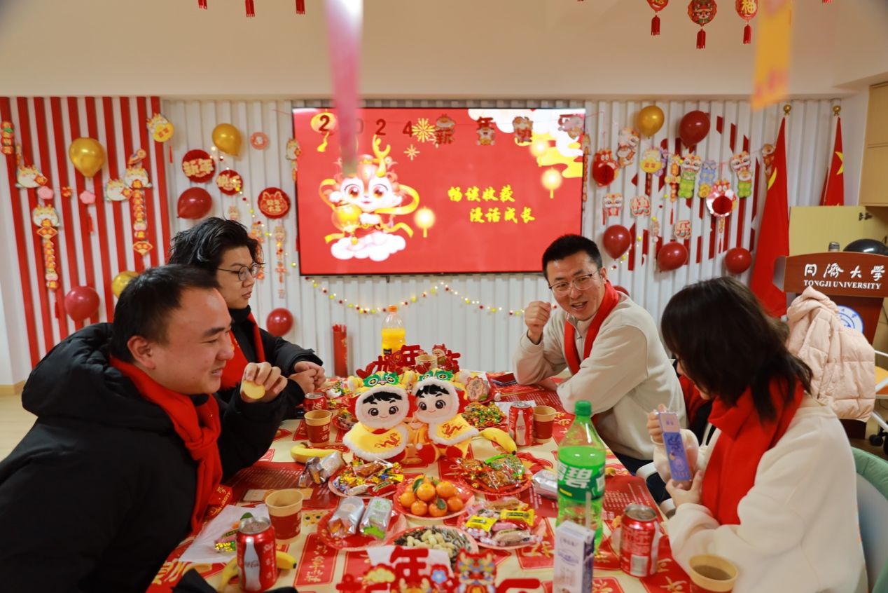 非常高兴前来参加这次新春茶话会,提前体验一波春节的喜庆,特别感谢学院老师们对我们这些留校生的关怀和慰问,也非常感谢筹办此次活动的老师与同学们,真的无比用心,令我在这寒冷的冬天感受到满满的温暖。今年应该是我在同济生活的最后一年,选择留下来过节主要还是希望为大论文再补充完善数据,为顺利毕业做最后冲刺。最后提前祝各位老师和同学们新春快乐,龙年龙马精神,科研和事业龙腾飞跃。
