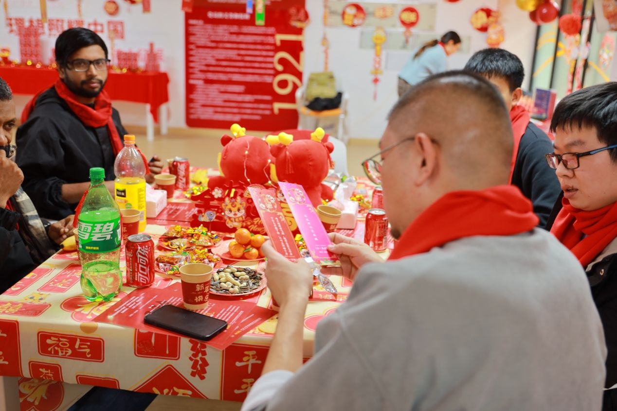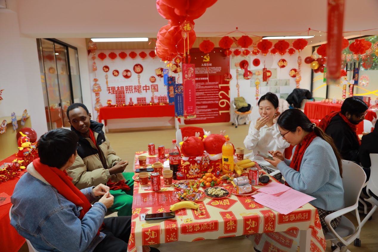 接着,老师和同学们分组开展了茶话年俗交流,畅聊各自家乡欢度春节的方式和习俗,从过年吃饺子或是汤圆,到汤圆的口味是甜口还是咸口。通过短暂的交流,大家了解到五湖四海的过年习俗差异居然如此之大,果真是“百里不同风,千里不同俗”。