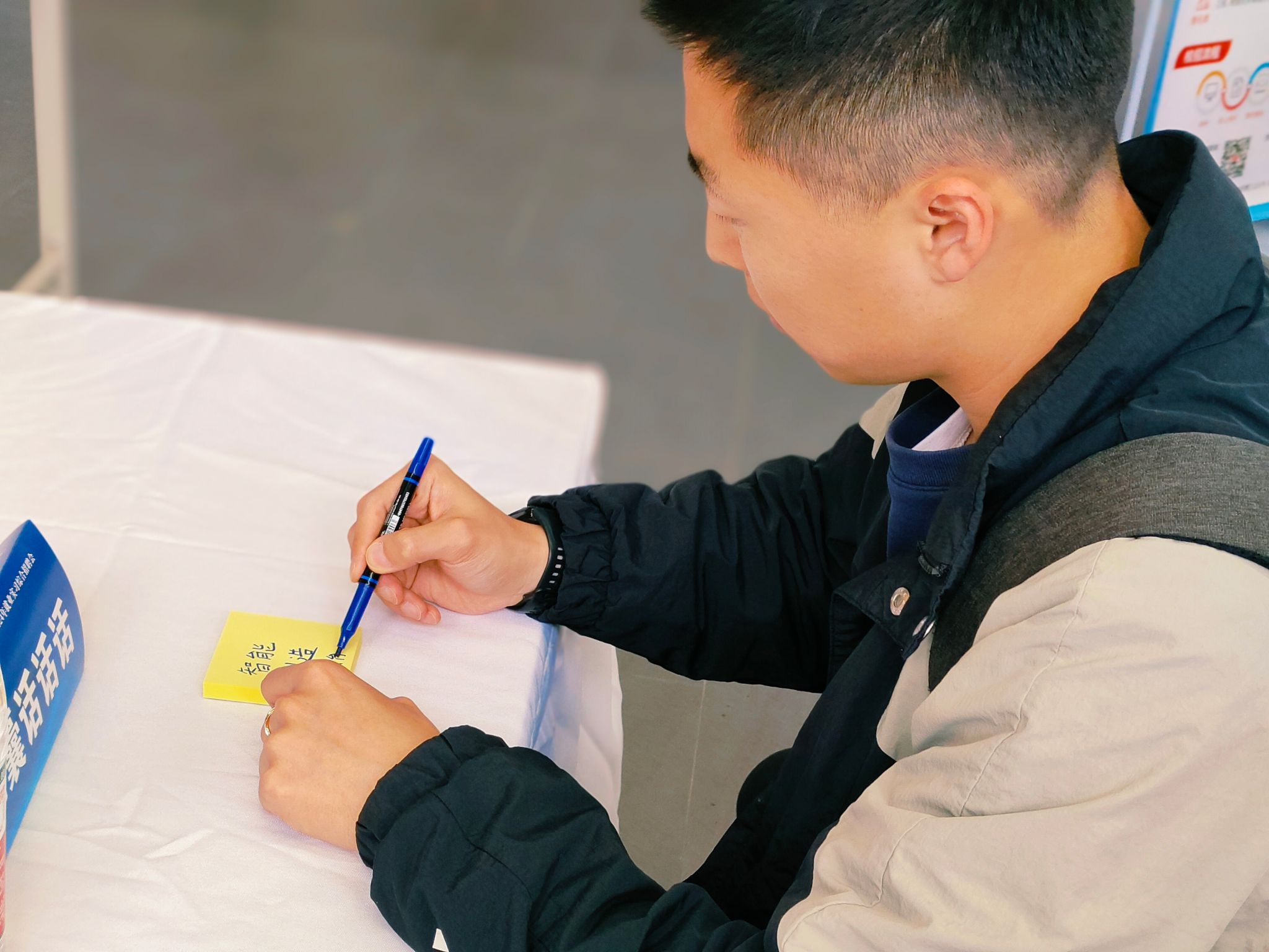 除了招聘和简历指导环节,此次活动还贴心地设置了“职涯漫漫探前路”特色互动摊位。“小岛游游游”以霍兰德职业兴趣测试为灵感,邀请同学选择最感兴趣的岛屿,探索适合自己的职业方向;“职业猜猜猜”则以寓教于乐的方式考验同学对不同职业的了解与认知;“地图圈圈圈”鼓励大家圈出心仪的就业城市,思考人生规划;“锦囊话话话”引导同学给5年或10年后的自己写下寄语,勾勒职业蓝图。同学们积极参与,在轻松愉悦的氛围中邂逅全新的自己,绘就生涯规划的篇章。