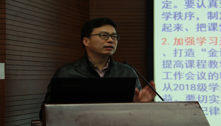 随后,邱军副院长通报了学院新学年人才培养工作情况。他概述了近期教育部高教会议及文件精神,指出:新时代对高等教育人才培养工作提出了新的要求,面对新形势,学院将狠抓会议精神贯彻落实,深化教学管理机制改革,推进教学基层组织建设,健全教学成果绩效监督考核奖惩制度,结合工程教育认证工作,加强实践平台及国际交流平台建设,构建全方位全过程深融合的协同育人新机制。邱军副院长还要求学院一线教师回归育人初心,坚持立德树人,提升育人能力,将思想政治融入教学育人过程,培养有理想、有信念、有文化、有纪律的社会主义优秀建设者和接班人。