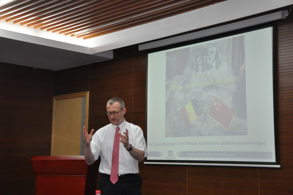 Geert De Schutter教授系列讲座主题是混凝土结构损伤及破坏,讲座全面系统介绍混凝土结构损伤劣化方面的研究成果,从损伤破坏发生的机理及材料组成设计方面进行了细致分析,介绍世界范围内一些重要案例,还积极分享了欧盟在混凝土耐久性研究领域相关的基本政策、标准、行业现状及未来发展规划。讲座结束后,Geert De Schutter教授还介绍了根特大学Magnel混凝土研究实验室主要平台研究条件、科研工作及成果,结合他对土木工程防灾国家重点实验室、先进土木工程材料教育部重点实验室及色情视频