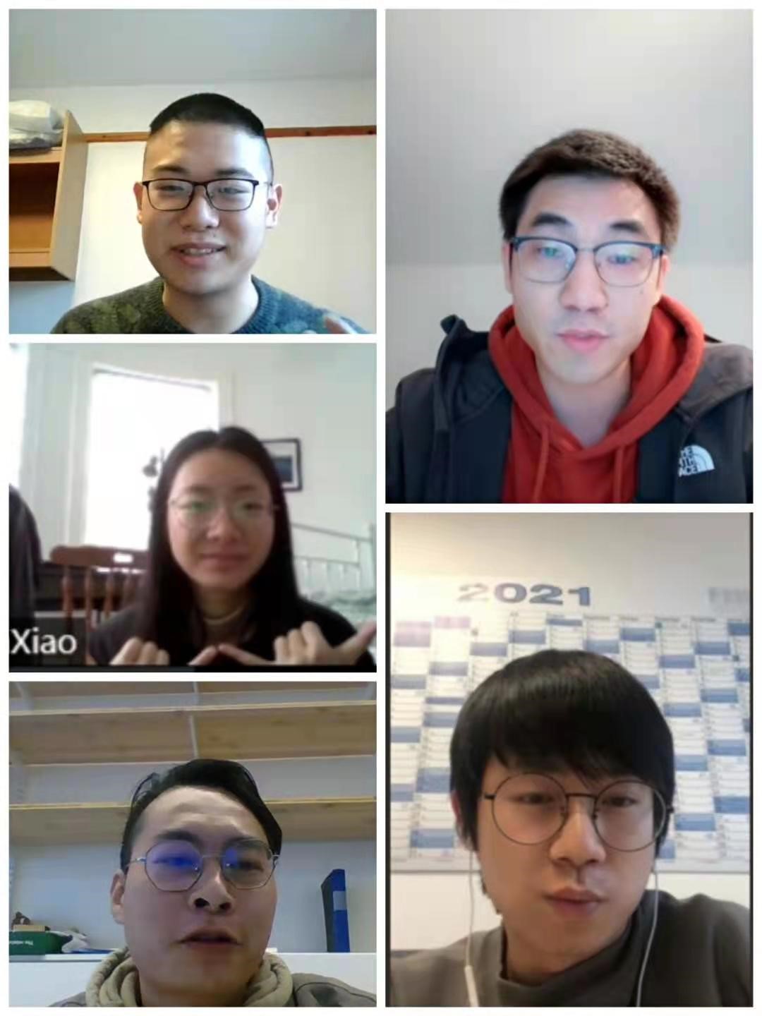 会议伊始,五位海外交流学子分别介绍所在地区的疫情形势与防控措施,着重交流了各自目前的学习与生活状况。海外疫情严峻,但大家防护物资充足,个人防护做得都非常到位。同学们积极配合当地政府以及交流学校的防疫要求,严格遵守相关规定。在使馆以及当地校友会等组织的帮助下生活用品与防疫物资充足,个别同学已经完成了新冠疫苗的接种,能够更加安心地迎战疫情。各位学子在交流学校正常修读网络课程,科学有序地开展实验研究,交流任务进展顺利,对未来充满了信心。学子们衷心感谢学院以及导师们的关心和指导,新春来临之际也祝愿老师和学院万事如意。