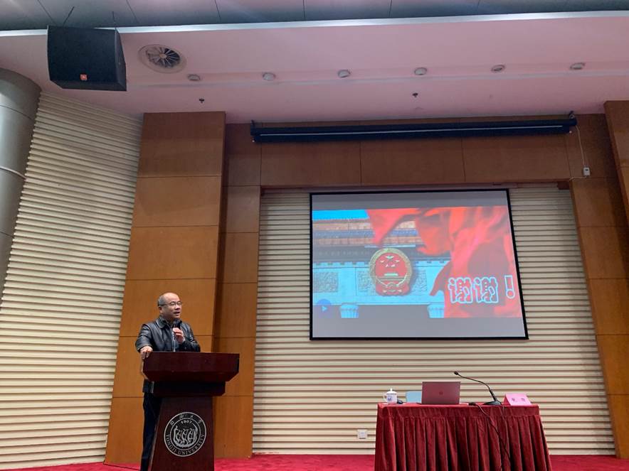 张雄教授受邀传达2021年全国两会精神,学院党政领导班子成员和全院教职员工近一百一十名出席报告会。报告会由嘉定校区党工委副书记覃文忠主持。