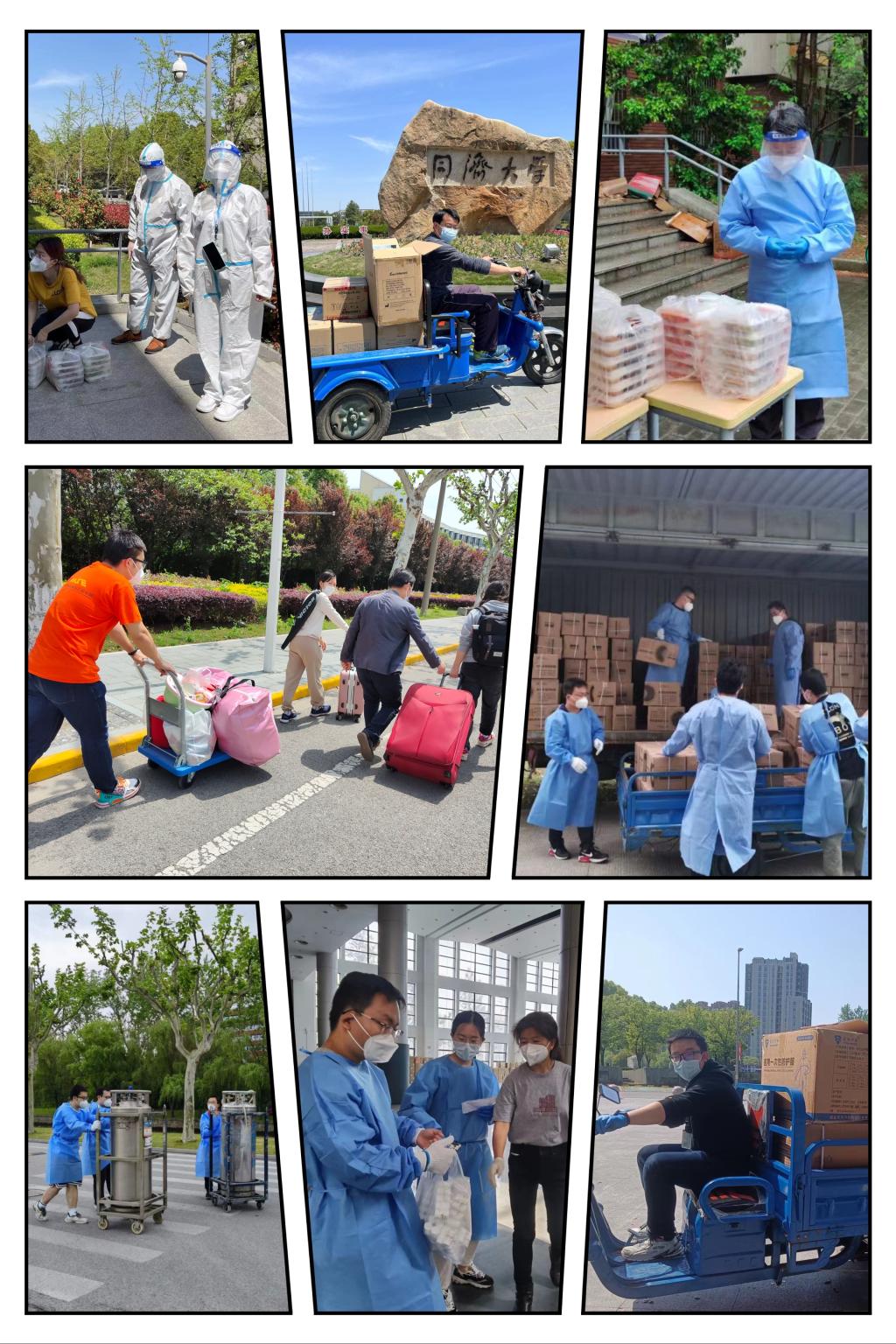 “嘉定校区的工作,材料学院不能置身事外!”嘉定校区进入准封闭管理后,学院第一时间向嘉定校区管委办支持被褥近80套,用于嘉定校区后勤、图书馆、临时隔离点等部门的疫情防控保障工作。在学生社区启动封闭管理后,学院又在第一时间向学院各实验室、课题组征集到18辆小推车,全部用于校区物资运输保障。这些充满“材情”的小推车,后来由学校统一调配支援友园14-15号楼和9-10号楼楼内物资的运输。在每一次突发的“第一时间”,学院总能想在前、做在先,以“疫”为令全院行动,尽己所能全力支持学校各项防疫工作。