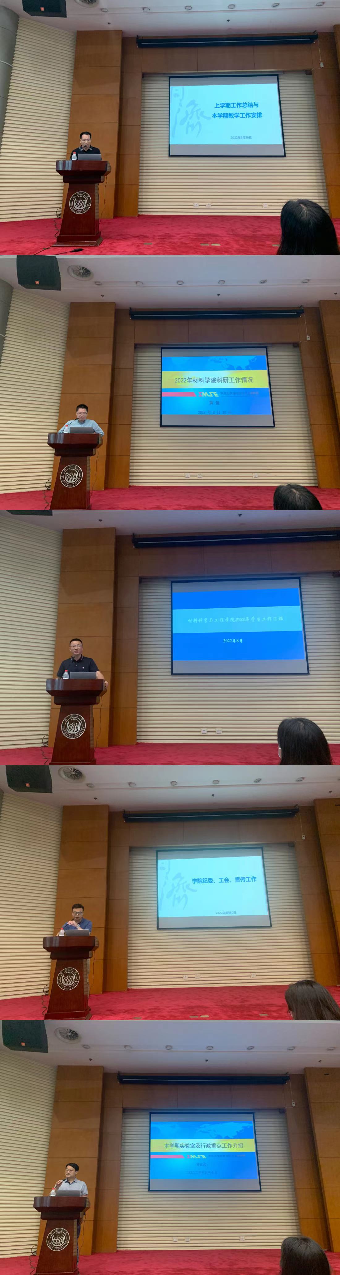 2022-2023学年第一学期第一次全院大会在同心楼224报告厅召开,本次全院大会是大家在经过了上学期的抗疫和异常炎热的暑假之后,首次线下会议。会议由副院长蒋正武主持,学院党政领导班子和全院教职员工、博士后近140人参加了会议。