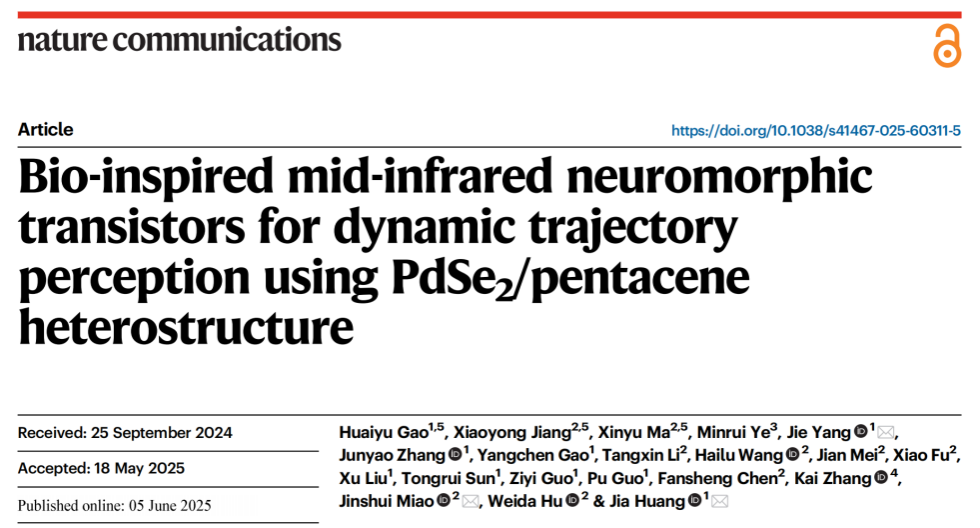 研究成果以Bio-inspired mid-infrared neuromorphic transistors for dynamic trajectory perception using PdSe2/pentacene heterostructure为题发表于《自然・通讯》(Nature Communications)。色情视频