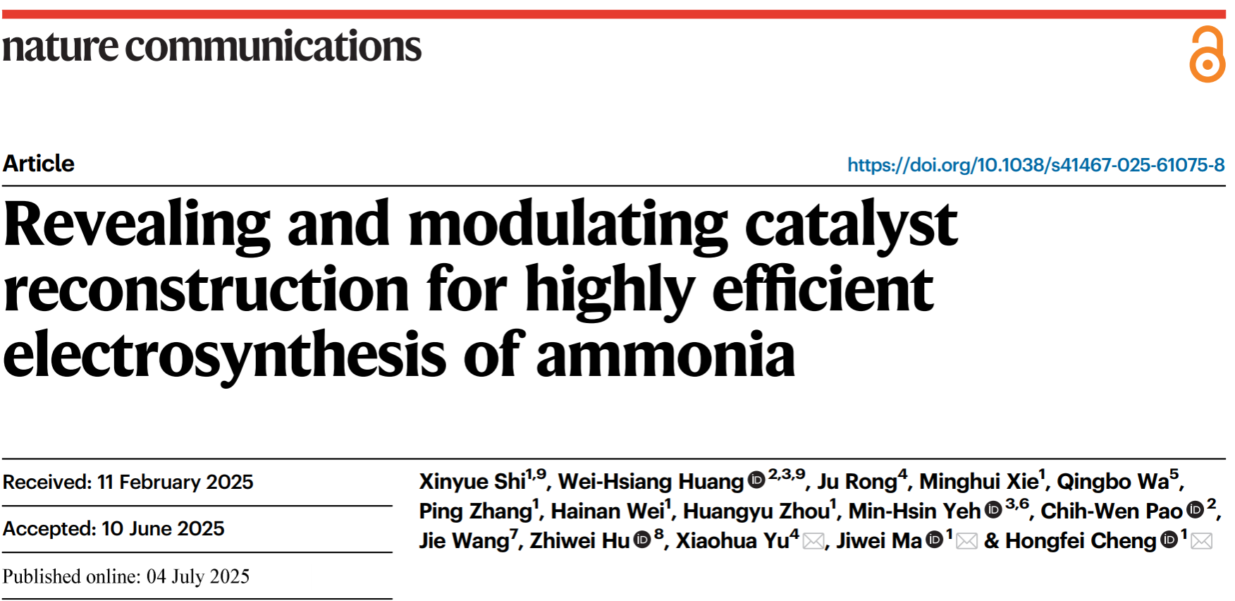 程洪飞特聘研究员团队有关开发电催化制氨催化剂的研究成果以“Revealing and modulating catalyst reconstruction for highly efficient electrosynthesis of ammonia”为题发表于《自然·通讯》期刊(Nature Communications)。