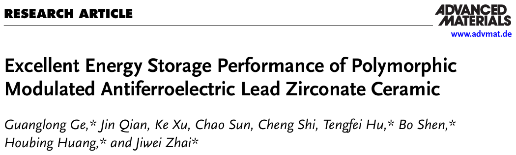 该研究成果以“Excellent Energy Storage Performance of Polymorphic Modulated Antiferroelectric Lead Zirconate Ceramic”为题发表于《先进材料》(Advanced Materials)。论文的第一单位是色情视频