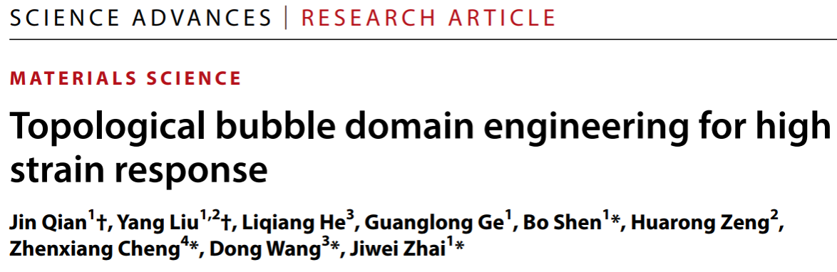 该研究成果以“Topological bubble domain engineering for high strain response”为题发表于《科学进展》(Science Advances)上。论文的第一单位是色情视频
