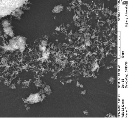 原图是在TESCAN VEGAⅡ型扫描电子显微镜下拍得超细氧化钇粉体的显微形貌图片,电压20kV,放大倍数5.0k。图中的细棒状结构是超细氧化钇晶体,由微波水热法合成。可见粉体中氧化钇晶体大小不一,局部团聚较严重。
