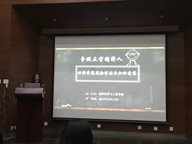 学校安全生产办公室葛晨晨老师、学院党委副书记王凌凌老师出席。材料学院研究生会承办此次竞赛,来自高分子、无机、土木工程材料三个专业方向的硕博士及本科生大四保研同学组建的共八支参赛队参加角逐,全院近百名学生到场观赛学习。