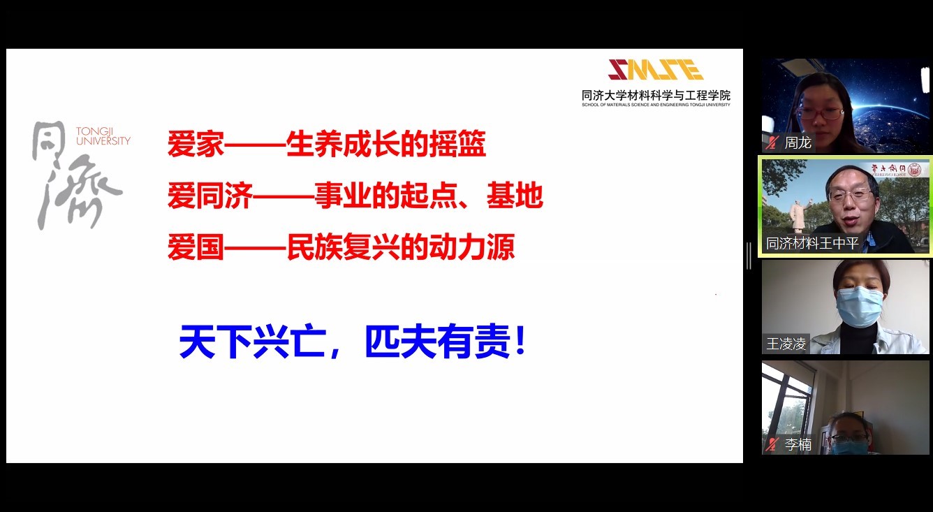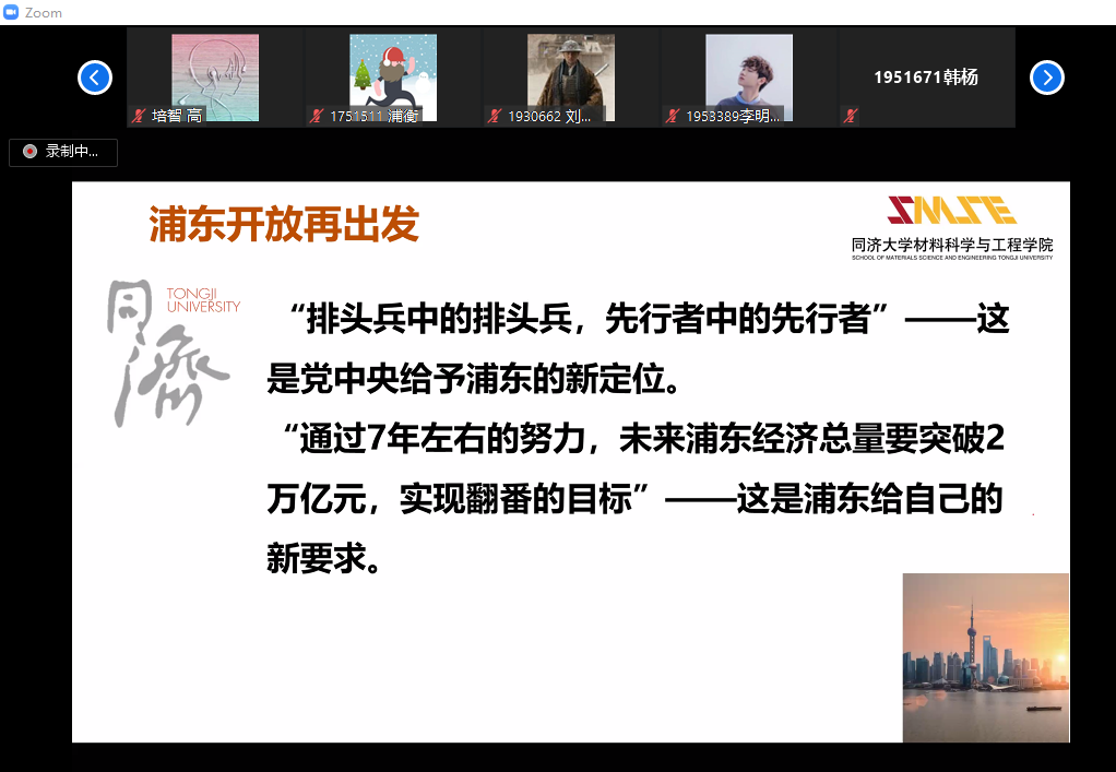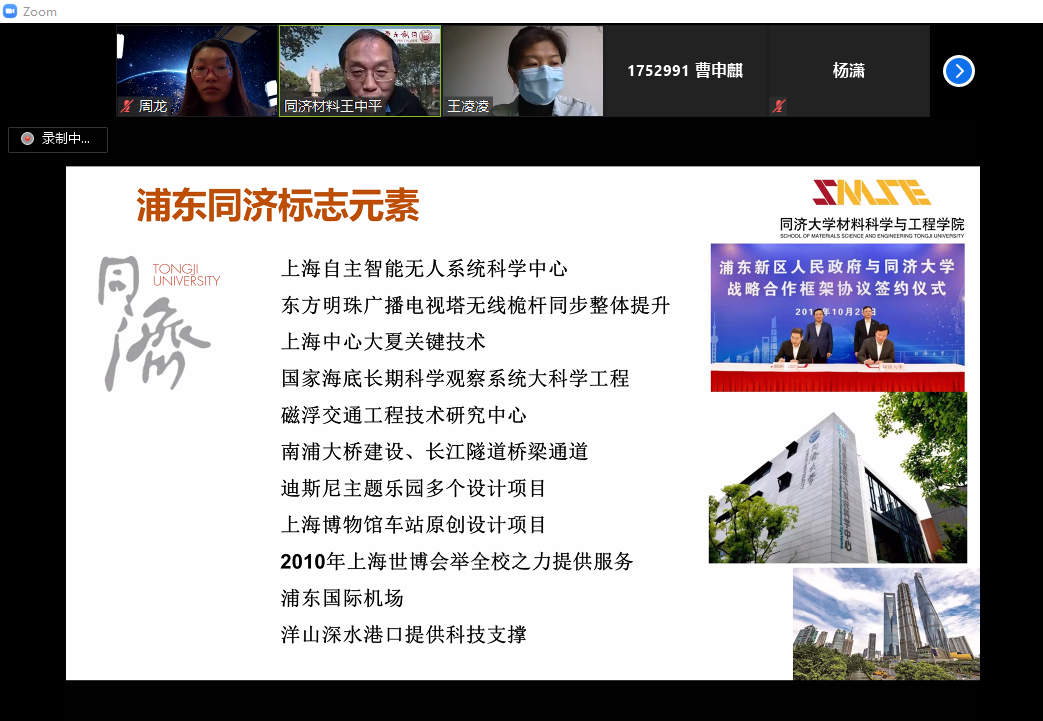 于zoom线上平台举办“从浦东开放三十年的发展看爱国精神”爱国主义教育主题报告,特别邀请到学院党委书记王中平教授作为主讲嘉宾进行了演讲,本场报告由学院党委副书记王凌凌老师主持,400余位本研材料学子共同聆听学习。