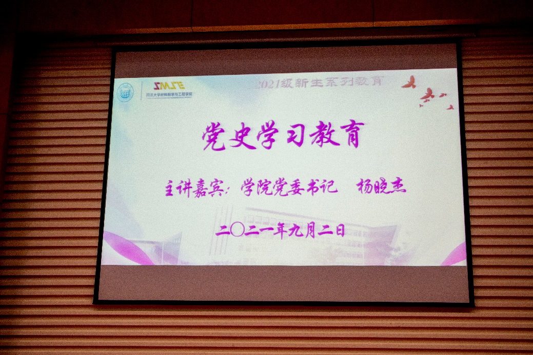 报告会上,杨晓杰老师以时间为脉络带领2021级研究生学子共同回顾了新民主主义革命时期、社会主义革命和建设时期、改革开放和社会主义现代化建设新时期、中国特色社会主义新时代四个阶段中党的光辉历史,一起重温了党史上的关键节点与重大事件,并生动讲述了与党在同一历史时期,同济的历史及所承担的历史责任,对应同时段我们材料学科的发展。