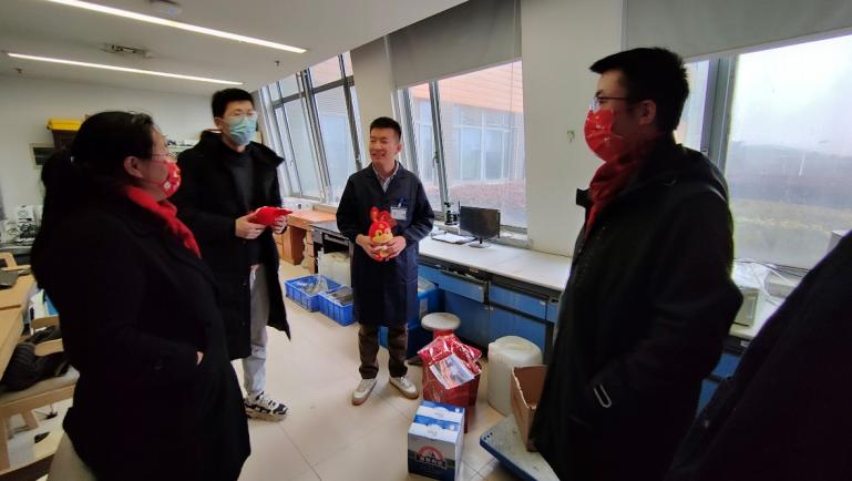 党委书记杨晓杰、院长许维、党委副书记梁春江以及学生工作办公室老师一同走访实验室及学生宿舍,看望并慰问了其他留校学生,通过亲切深入的互动交流,老师们全面了解学生寒假期间留校的原因,询问了近期的学习、生活、科研情况与生活需求,表示学院为留校学子开通科研测试绿色通道。同时叮嘱同学们寒假期间要注意劳逸结合,保重身体,遇到困难及时与学院的老师们联系,学院会尽全力帮助同学们解决。最后学院老师为每位同学送上了丰厚的新春大礼包及俏皮可爱的兔年公仔,与同学们一起用活泼萌趣的兔年窗花装点宿舍,为大家送上了新春祝福,令留校学子感受到“材料大家庭”的温暖。