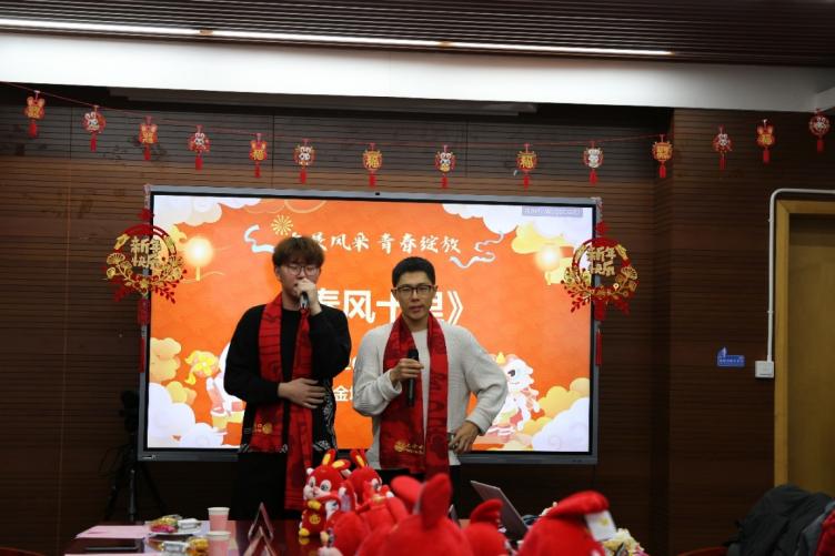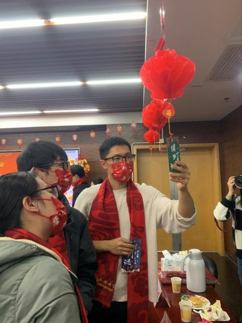 大展风采环节,由2018级博士生周嘉予、2019级博士生唐婧和2022级博士生安博共同带来歌曲《无名之辈》,为老师与同学送来新春祝福,希望在座的所有人在新的一年怀揣梦想又脚踏实地,创造属于自己的辉煌;2020级的本科生刘金坤与哈冶洋为大家演唱歌曲《春风十里》,传递思乡之情,彰显青春活力。在温馨欢乐的气氛下,大家一同为恰逢今年除夕生日的2020级博士生詹培敏同学庆生。学院精心准备了精致唯美的蛋糕和礼物,给留校的学子送上生日的祝福和慰问。在在场师生的祝福中,同学许下生日心愿,并表达了对学校和学院的由衷感谢,以及对同学们的真挚祝愿。共话年俗、追忆变革的现场互动环节同样激发了同学们的热情,来自五湖四海的同学纷纷分享家乡新时代十年的发展变革以及年俗的变迁和专属记忆,展现了神州大地多种多样庆祝春节的习俗,彰显着中华传统节日文化丰富的表现形式与源源不断的生命力。在乐猜灯谜、喜迎新春的活动中,现场全员参与、热情活跃、脑洞大开,大家依次分享各自手中的灯谜及答案,在欢声笑语中传递温情、启迪智慧,通过灯谜游戏彰显中华文化的博大精深,体现材料学子丰富的想象力和宽广的知识面。