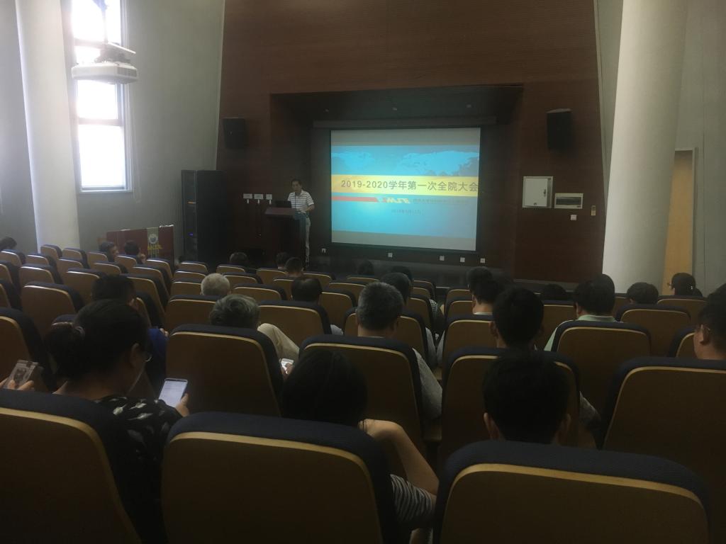 9月17日下午,色情视频 2019-2020学年第一学期第一次全院大会在德才馆报告厅召开,全院教职工100余人参加会议,会议传达了学校“不忘初心、牢记使命”主题活动精神,并就本学期学院各项工作重点及计划作了布置,学院党委书...